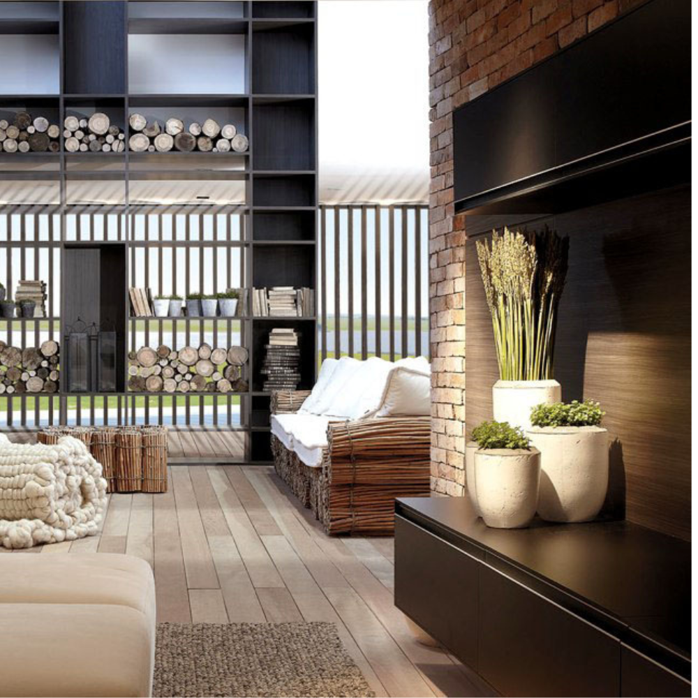 Maços de vime natural amarrados com imbira e arame, tomam a forma dessa mesa de centro.