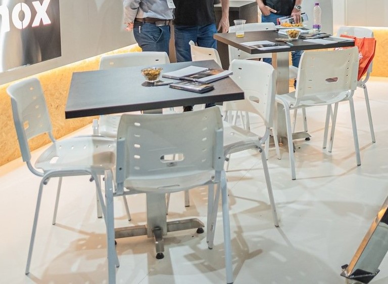A cadeira Elo pode ser personalizada com aplicação de logomarca.
