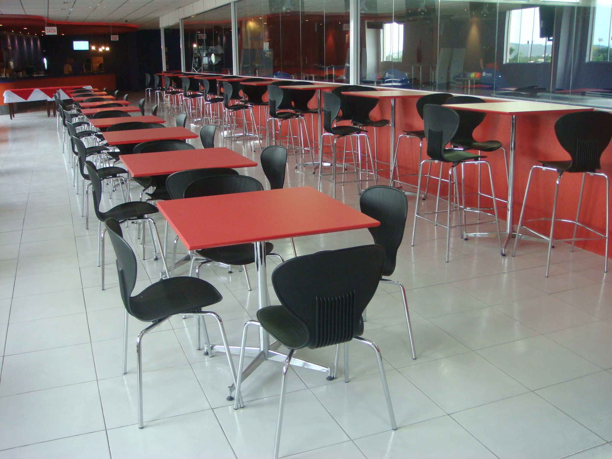 Cadeira empilhável. Base tubular com concha injetada em polipropileno.