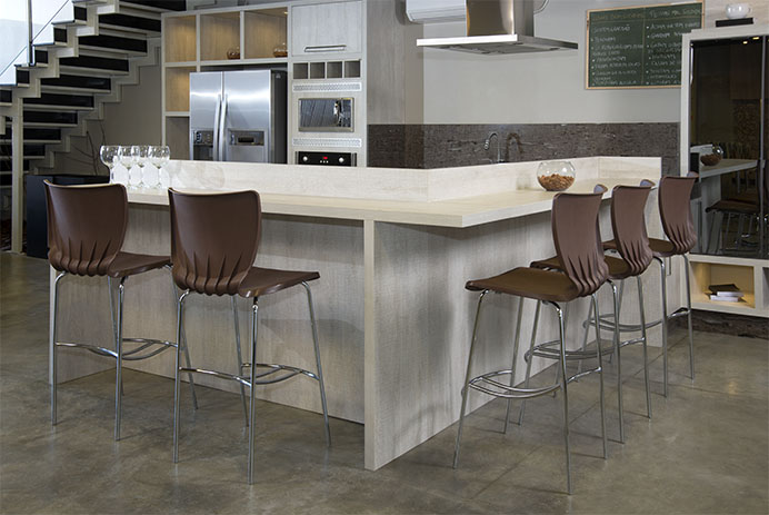 A banqueta que vai da bancada de cozinha americana ao barzinho.