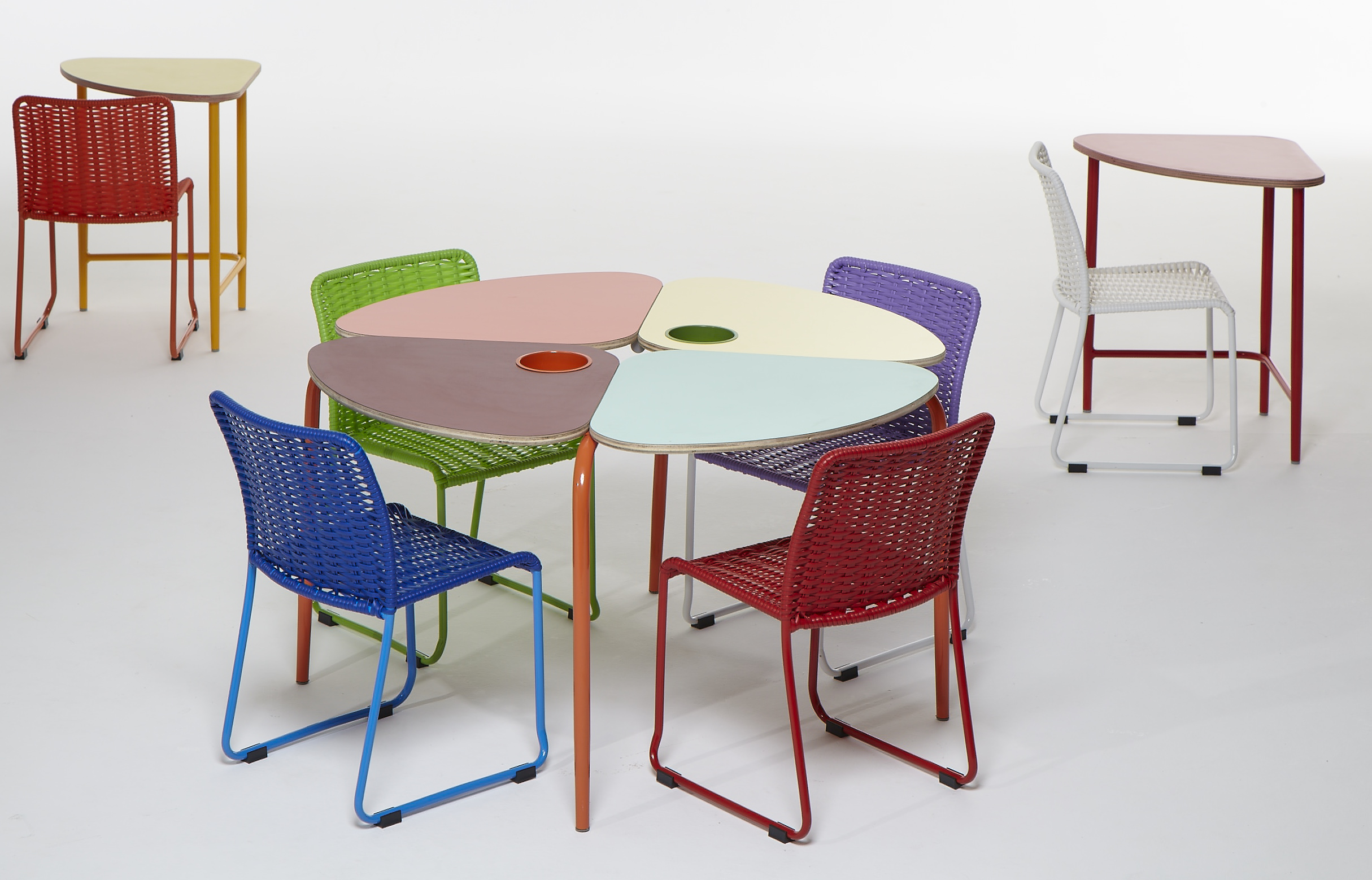 Com base de metal e tampo revestido com fórmica em diversas cores, permite que as crianças abusem da criatividade.