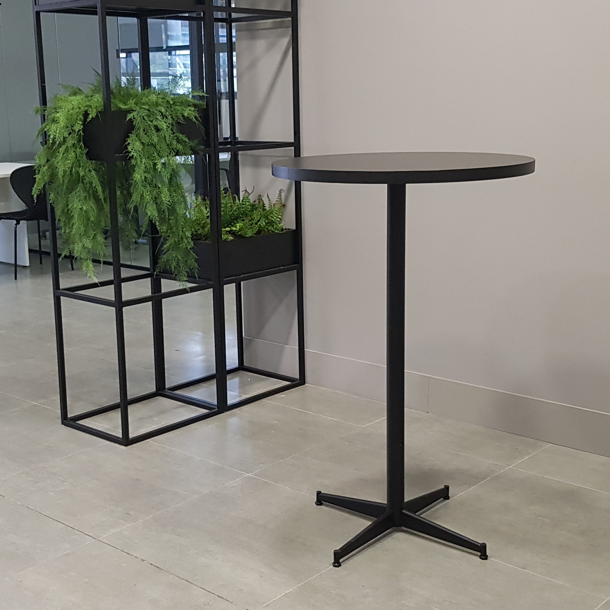 Mesa alta com base central tubular.
