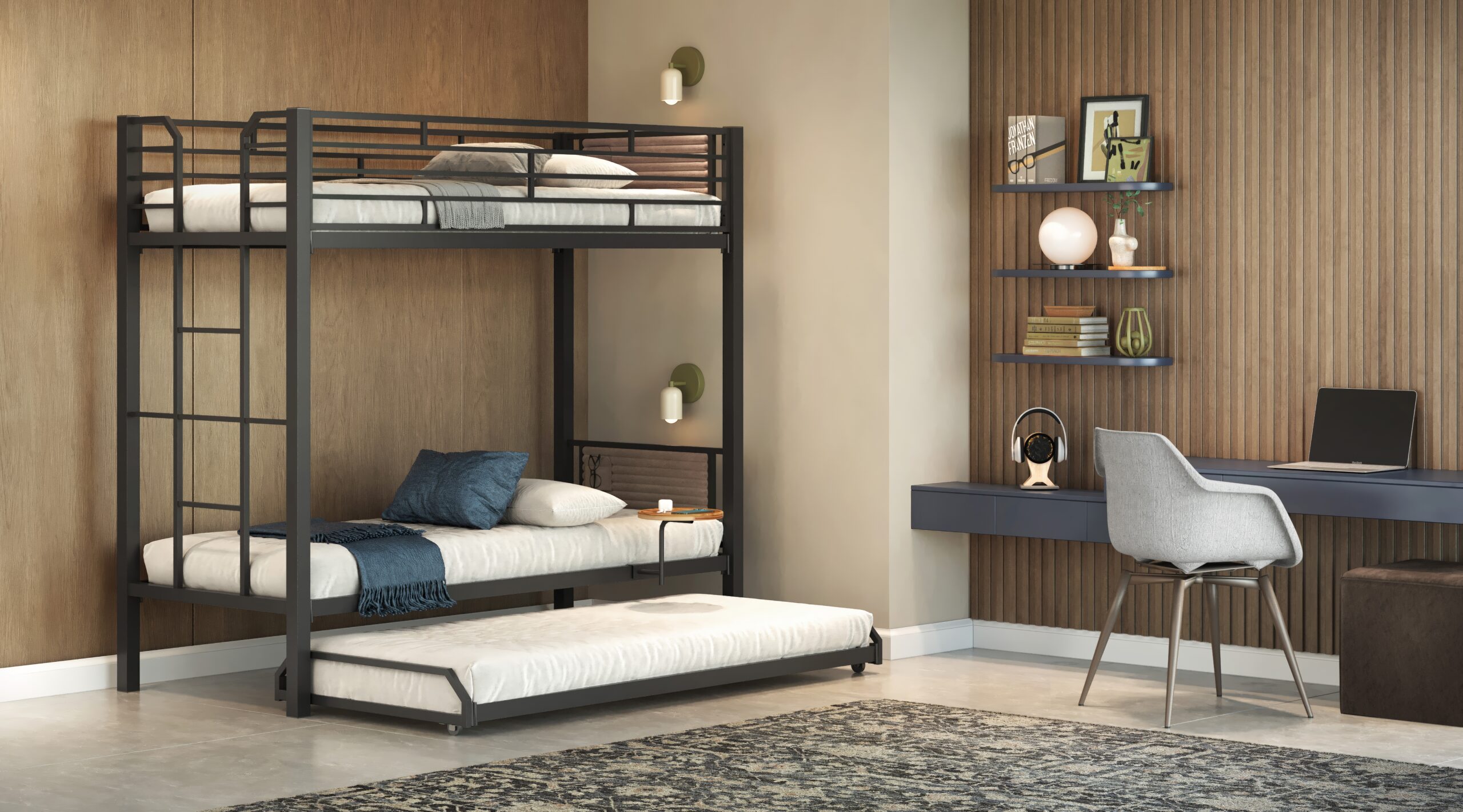 Beliche tubular com uma grade de segurança e cabeceira ripada – Para colchões de 78x188cm (vendidos separadamente)