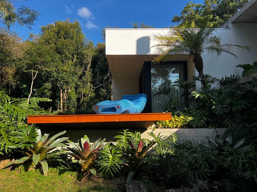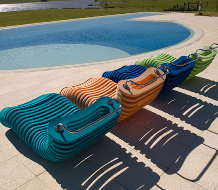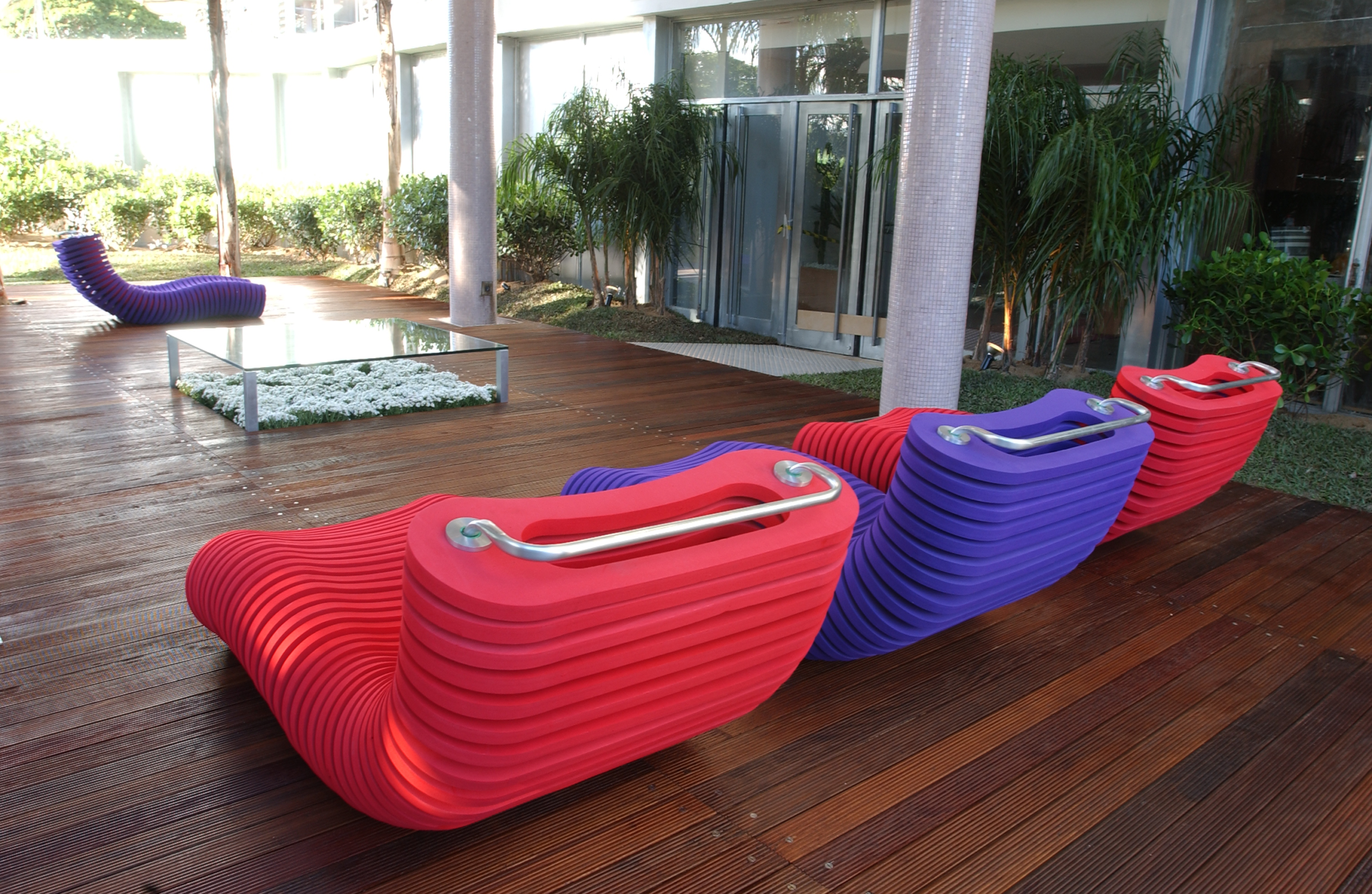 A Anelídeos Chaise é autenticamente brasileira, com design da gaúcha Eulália Anselmo, vencedora do Salão Design da Movelsul. A espreguiçadeira alia a forma inusitada ao ludismo e à tecnologia: a “minhoca de jardim que flutua” é composta por fatias em E.V.A. e uma estrutura em aço inox, permitindo o seu uso no solo ou em piscinas.