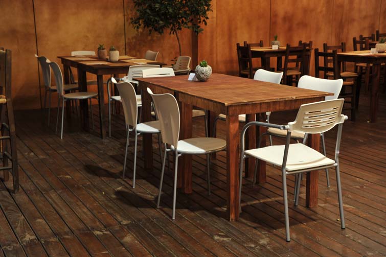 Cadeira empilhável com braços. Estrutura tubular. Assento e encosto em polipropileno.