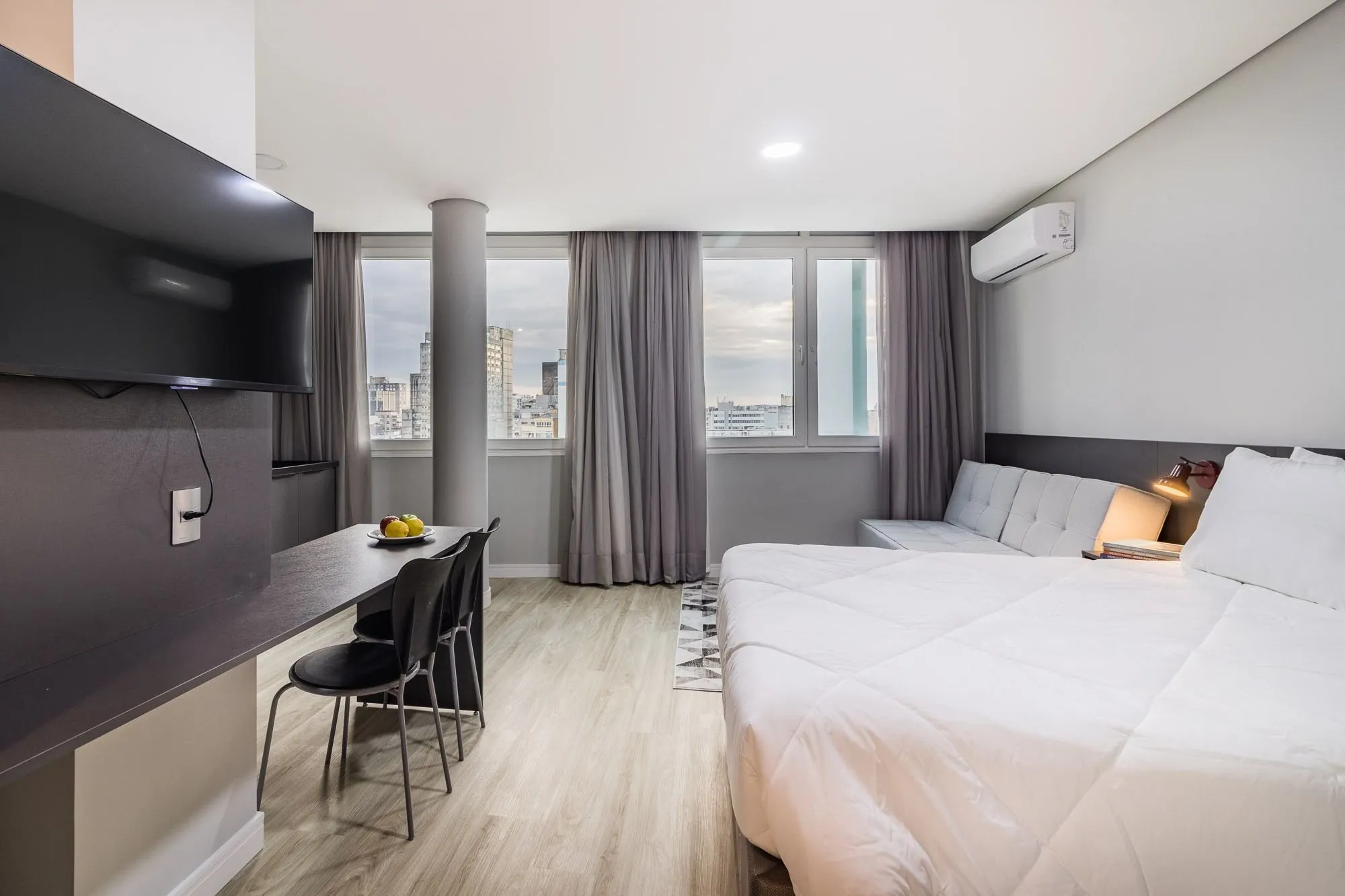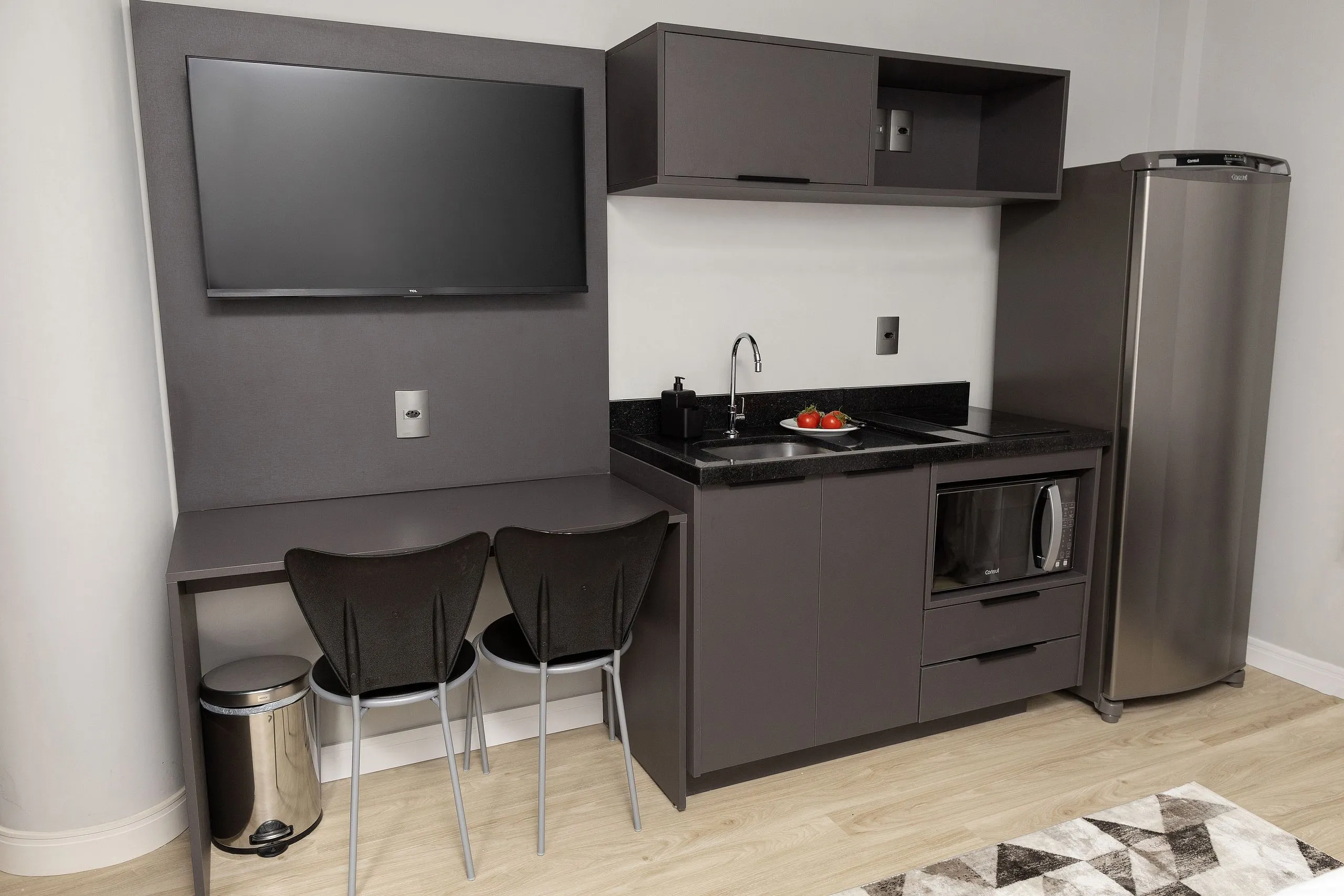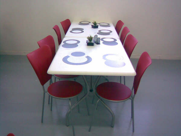 Cadeira empilhável. Estrutura tubular. Assento e encosto em polipropileno.